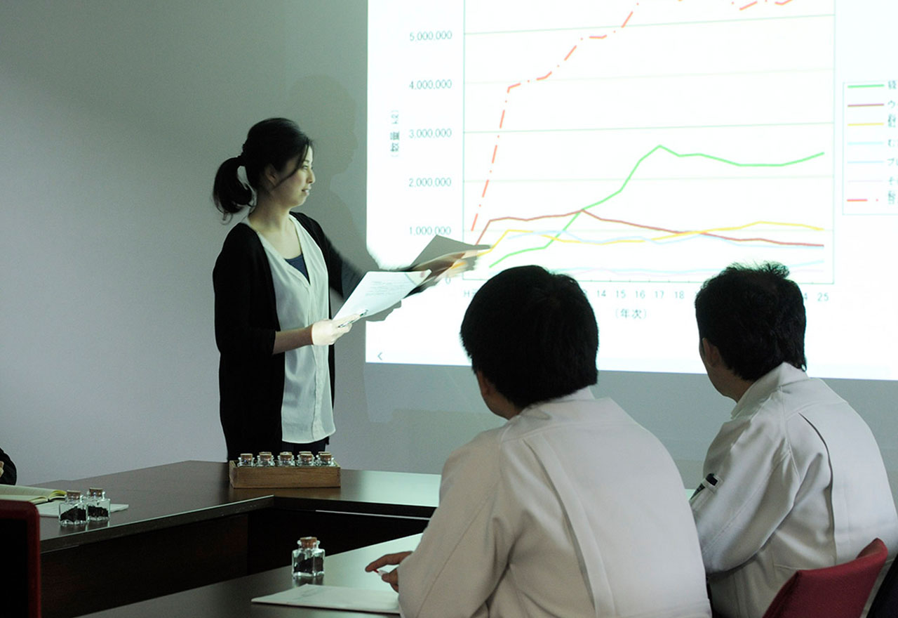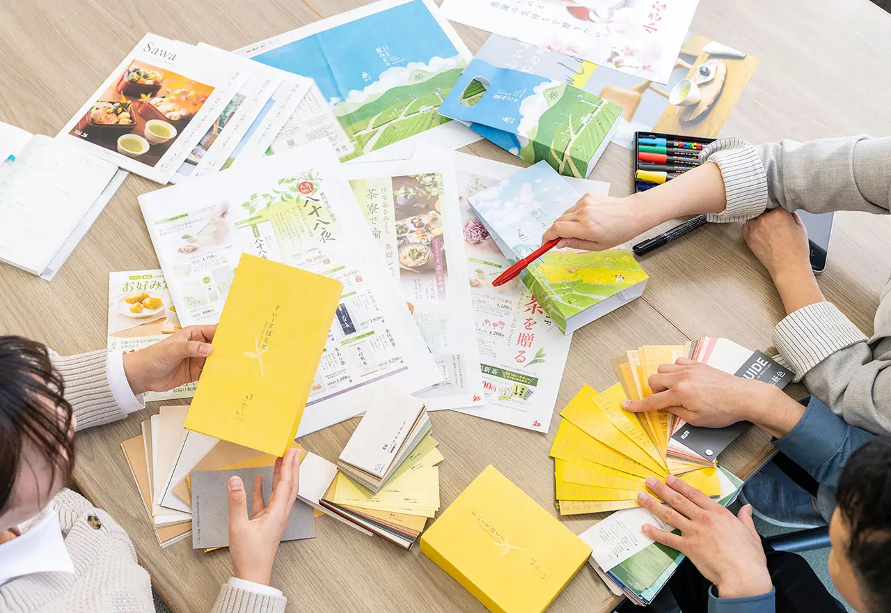 お茶やお菓子、メニューなどの商品開発を行います。市場動向やお客様の声をもとに、コンセプト設計から仕様の決定、価格設定、発売スケジュールの管理までを担当します。